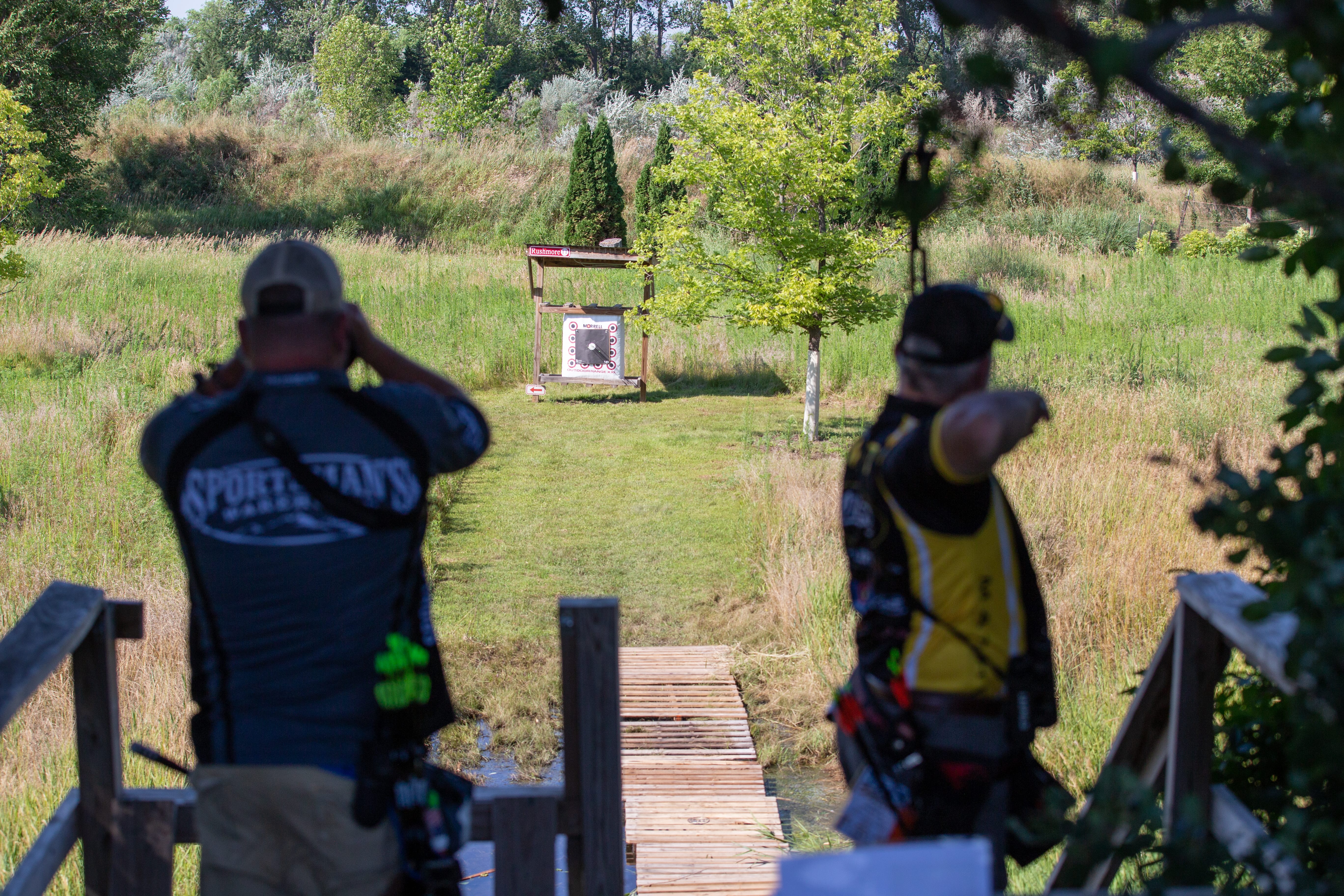 Friday was the first official day of competition for the Outdoor Field National Championships. Due to heavy rain from the past few weeks, some of the courses were a little muddy. Despite this, archers were able to walk on wooden pallets set on the ground through the courses to help archers keep steady. Refreshments were available at several locations by tournament staff. Sunny weather was in our favor for Friday and Saturday morning, but Saturday afternoon and Sunday morning there was some rain to contend with.