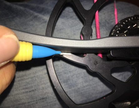 For Cam Rotation, I use a fine point pencil to draw a line along the outside edges of the cables where they cross certain portions of the cams. And I also draw lines along the limbs as a secondary reference for cam rotation. I prefer to use a pencil for these rather than marker so I can make changes easily and the multitude of marks I make with the pencil ensures that even if I smudge a mark accidently during the season, there will likely be an extra reference. Specifically on my Fanatic 2.0 with the Triangle stops, I used a silver sharpies along the edge so that in the event one gets bumped, I can quickly tighten it back in place.
